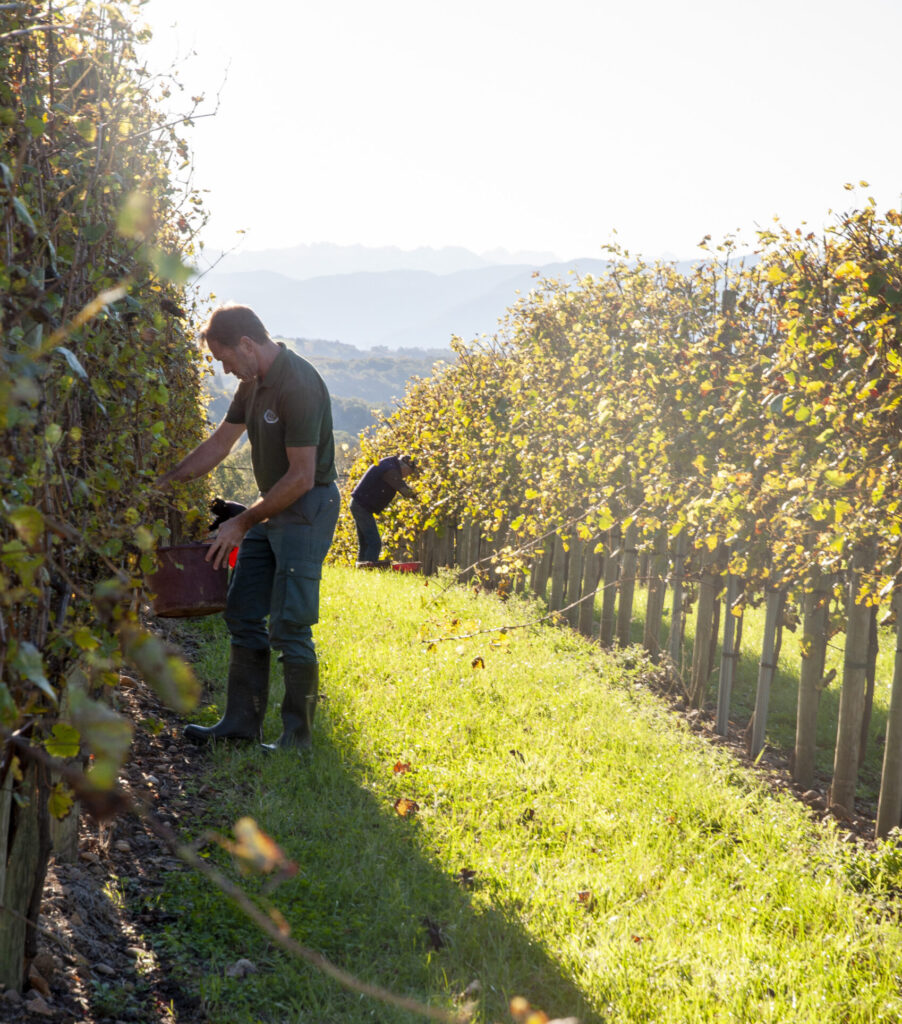 Une des caractéristiques de l’AOP Jurançon provient du vent du Sud appelé le Foehn, qui vient déshydrater le raisin et concentrer les arômes. Le soleil a également le même effet : le volume du jus va diminuer, mais il va se concentrer en sucre. Cette méthode est appelée Passerillage sur pied. Elle permet d’obtenir des vins moelleux exceptionnels.